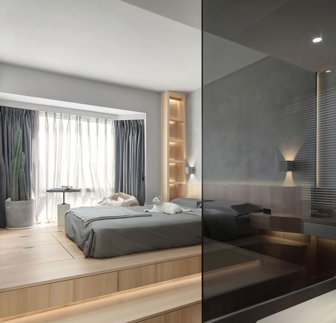 踏踏高度和飄窗結(jié)合,延伸空間感。不同的層次,滿足不同的功能需求。