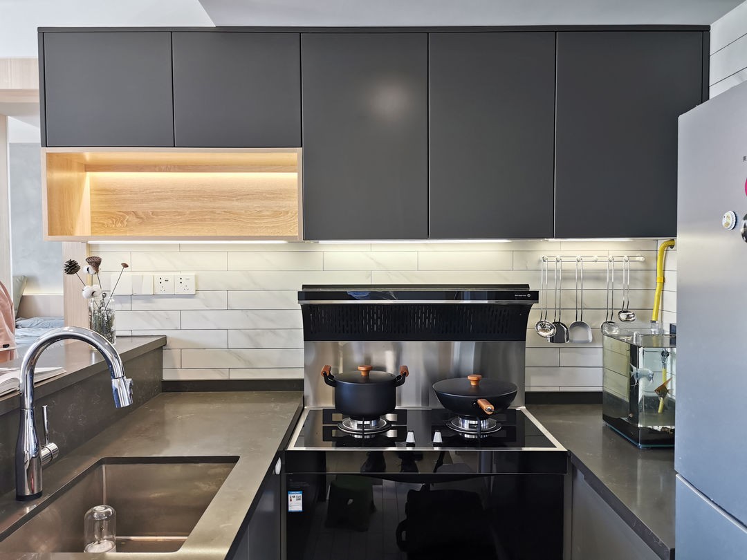 櫥柜吊柜手掃感應(yīng)燈,方便開關(guān),同時提升臺面照度。